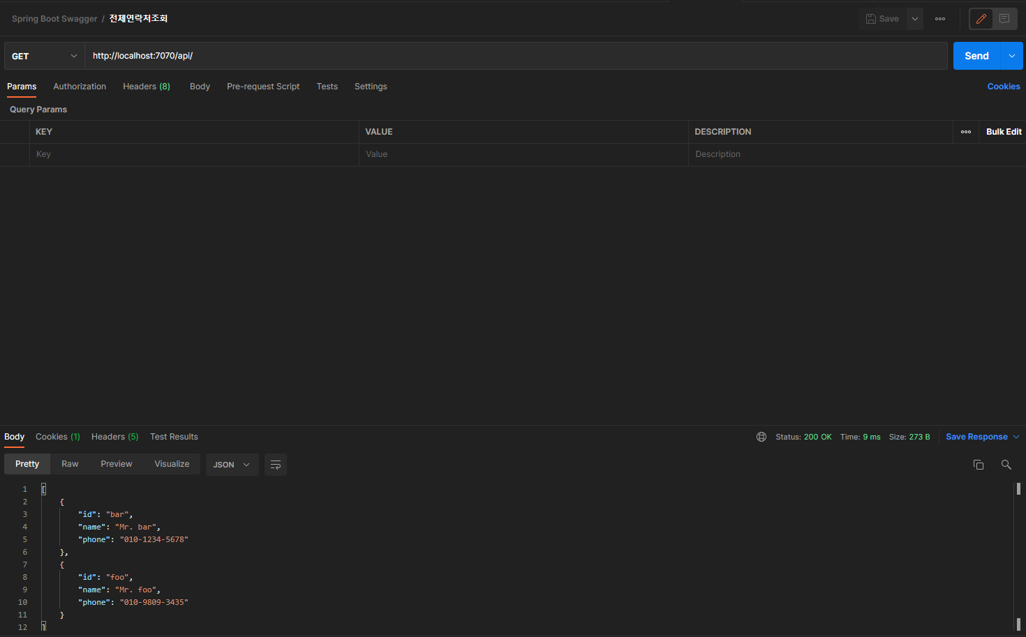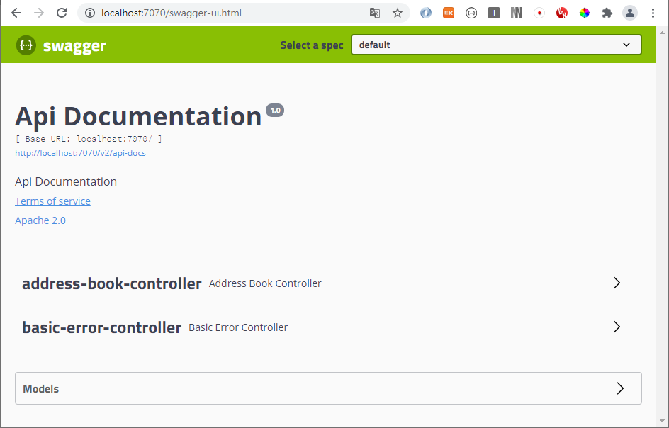 첫 번째로 address-book-controller를 선택하면 아래와 같은 화면이 보일 것입니다.