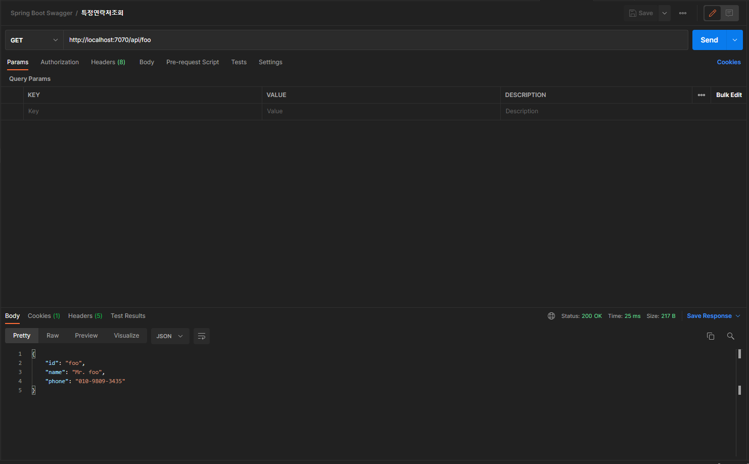 파라미터 등록 후 Execute 버튼을 누르면 아래와 같은 결과가 보일 것입니다.