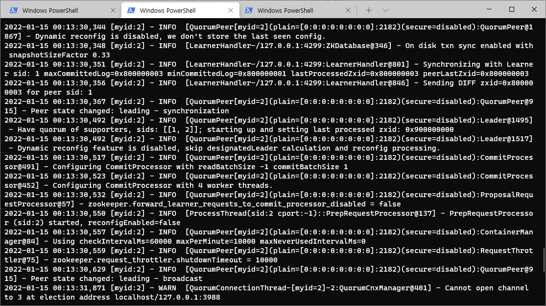 PS C:\zookeeper\zNode3\> .\bin\zkServer.cmd
